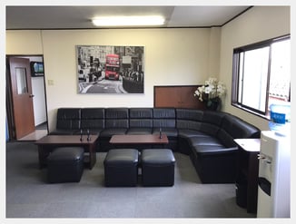 弊社は1Fをガレージスペース、3Fを受付事務所・商談スペースとしております。